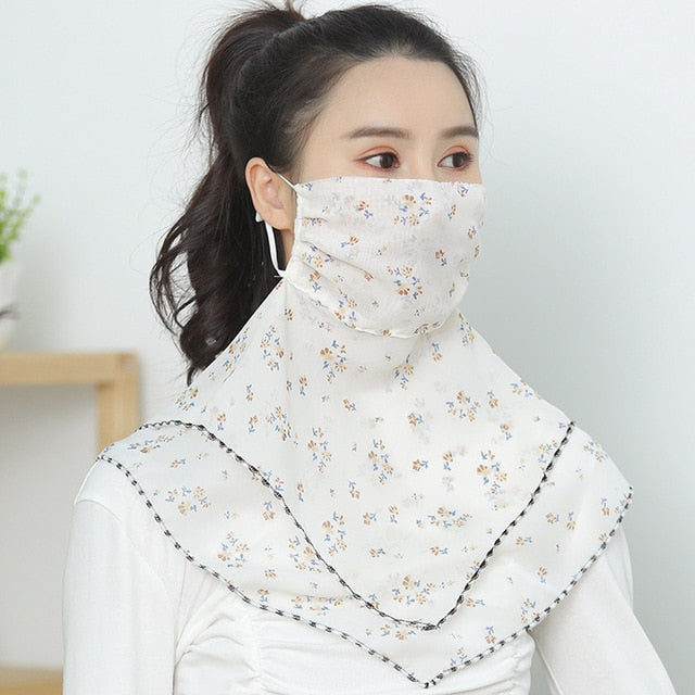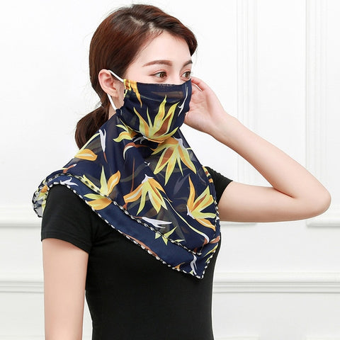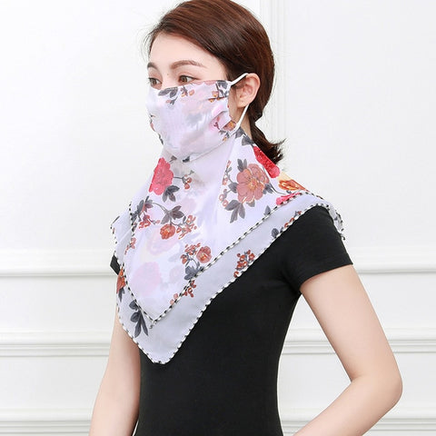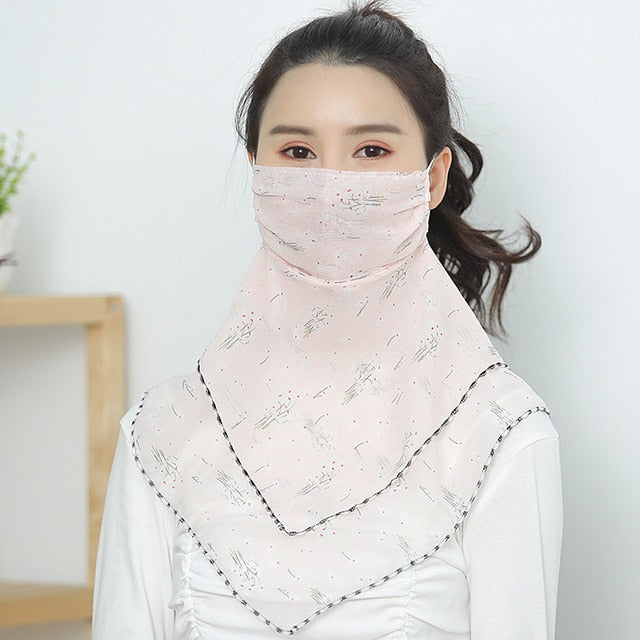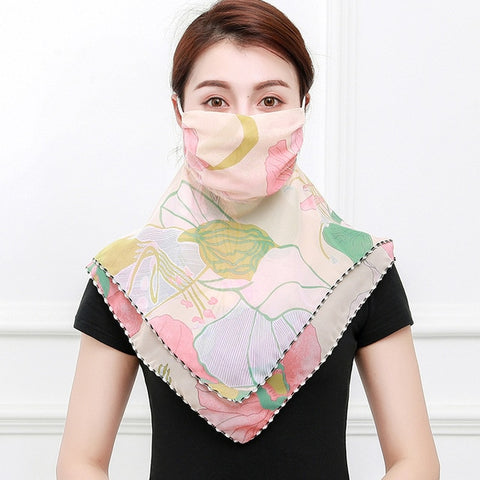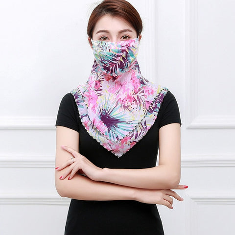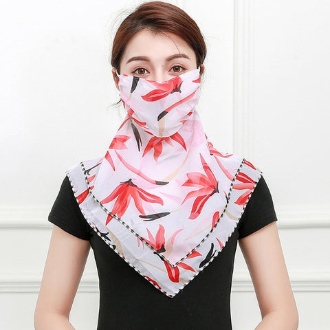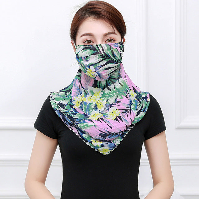 Temperament neck breathable mask new spring and summer anti-UV chiffon thin veil sunscreen multi-function large mask scarf