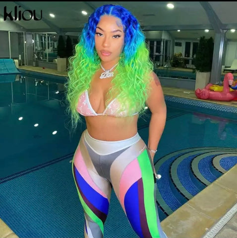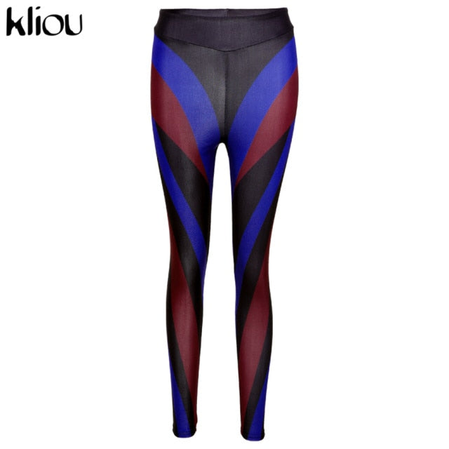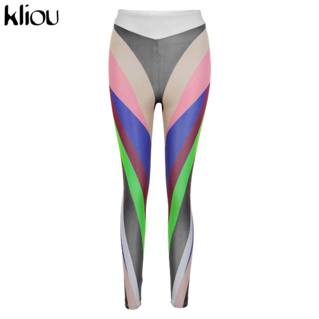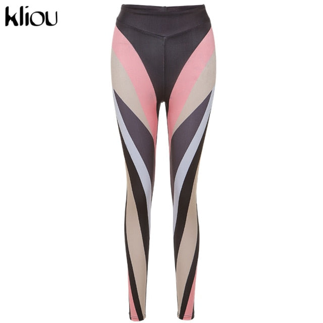 Color Blocking Women Leggings High Waist Stretchy Skinny Color pant