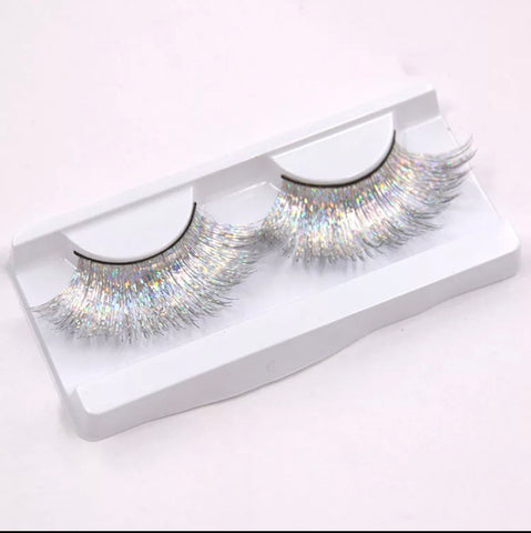 1 Pair Laser Gold Silver Line False Eyelashes White Thick Long Eyelashes
