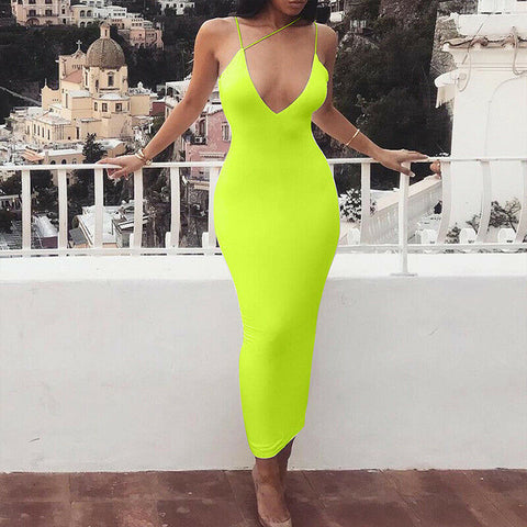 2019 Women Sexy Bodycon Sleeveless Strap Deep V-neck Dress Hollow Out Solid Clubwear Party Long Maxi Dress Sundress New Arrival