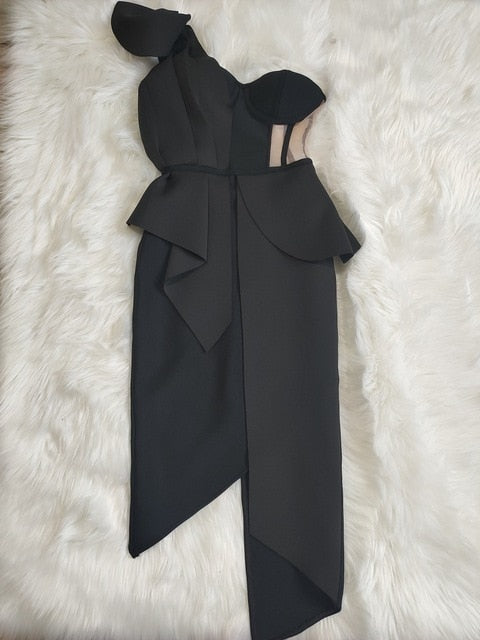 2020 NEW SUMMER FASHION WOMEN BODYCON DRESS ONE SHOULDER BOW MESH RUFFLE SLEEVELESS BANDAGE DRESS CELEBRITY PARTY EVENING SEXY