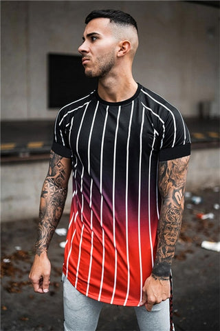 men's stylish cool T-shirt, men's casual style striped hip-hop short sleeve street element printed top, wholesale