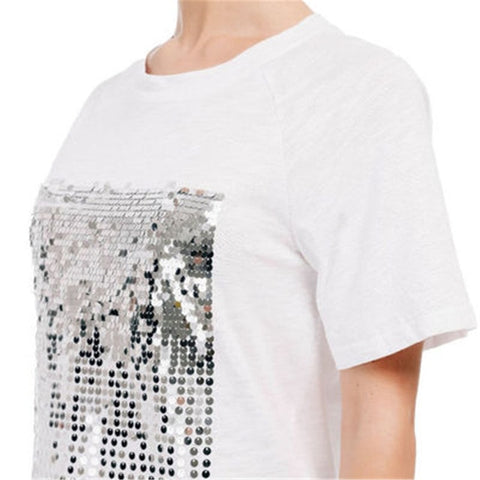 Material: COTTONMaterial: Bamboo FiberDecoration: SequinedPattern Type: SolidSleeve Length(cm): ShortSleeve Style: REGULARModel Number: 2402245 women t-shirtFabric Type: BroadclothCollar: O-NeckClothing Length: REGULARStyle: Casual