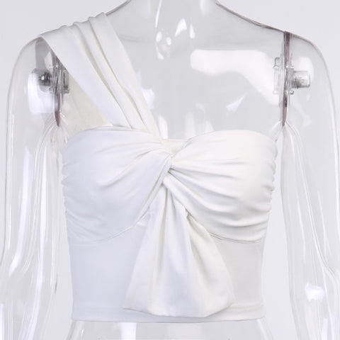 WannaThis One Shoulder Crop Top Front Bandage Backless White Slim Tank Top Women Solid Summer Vest Ruched Irregular Criss Cross