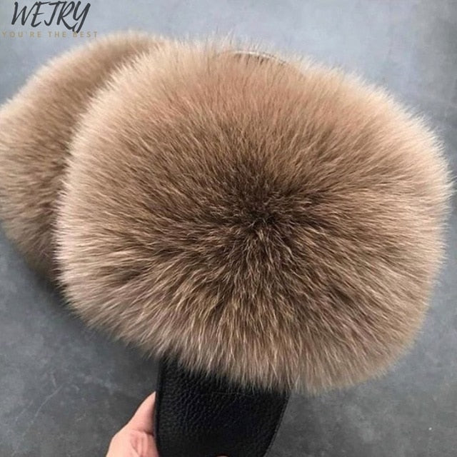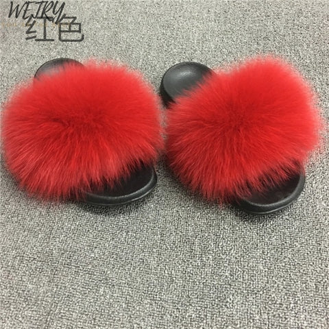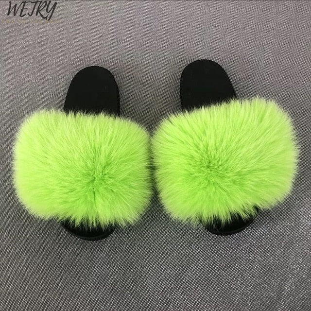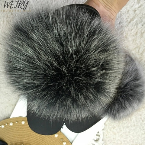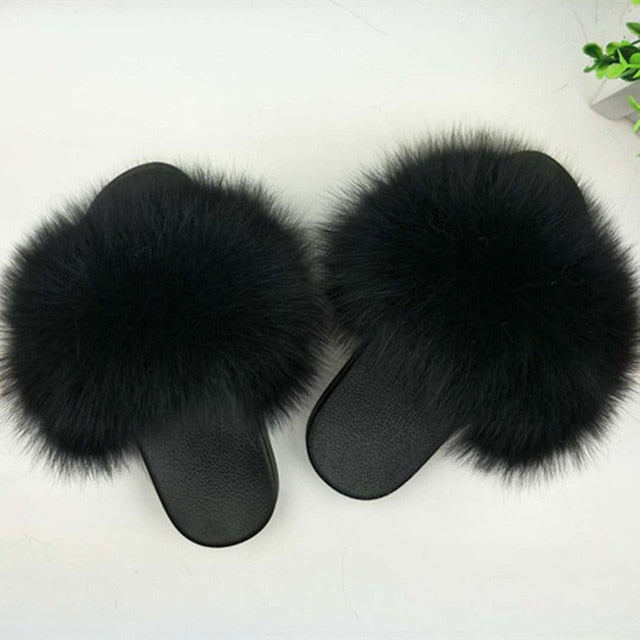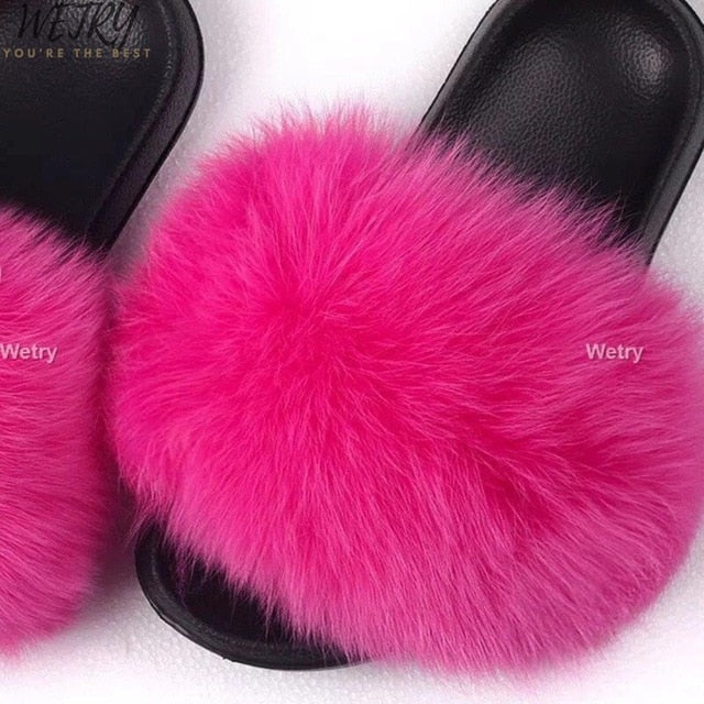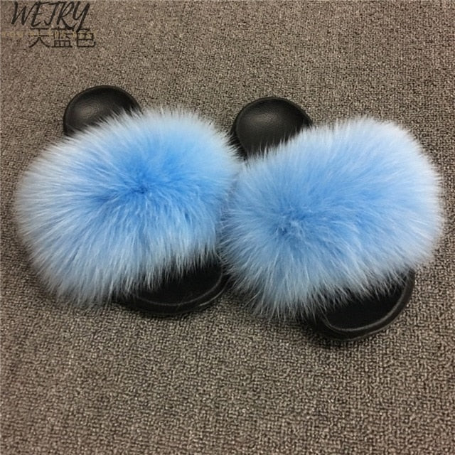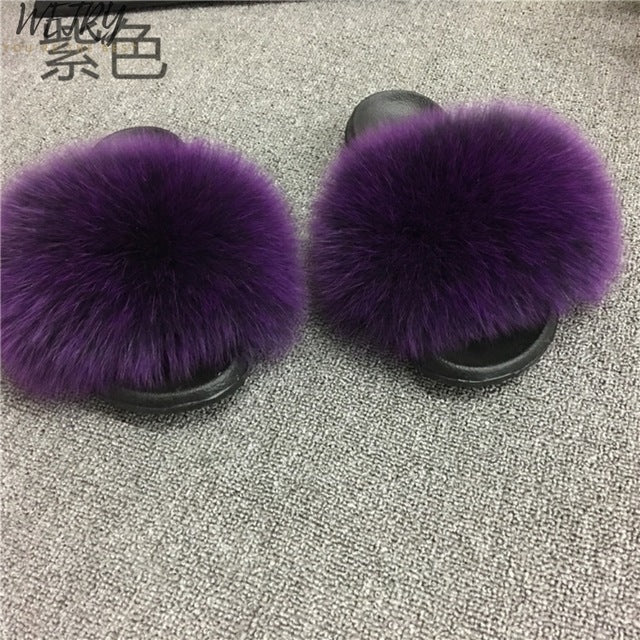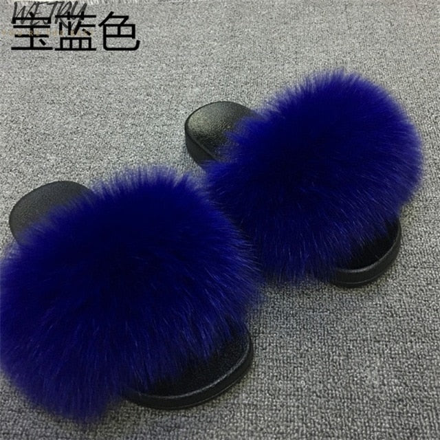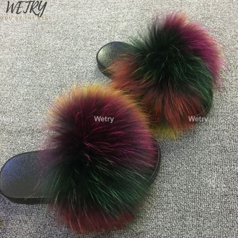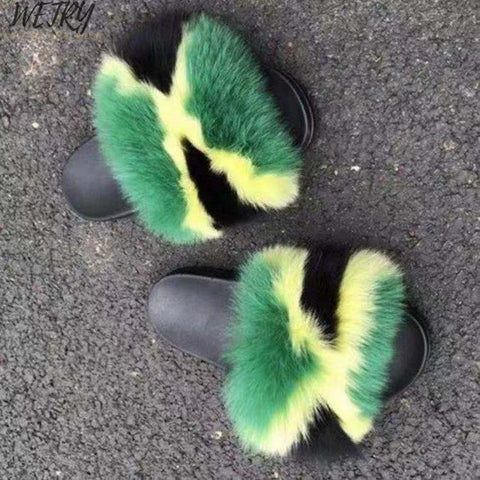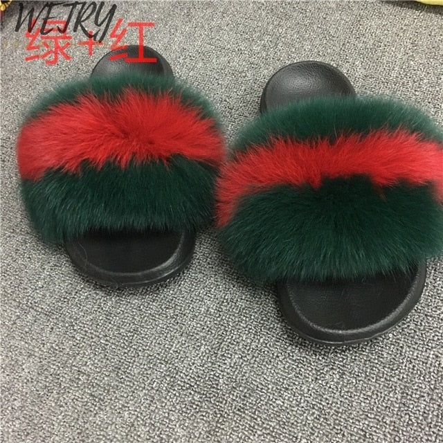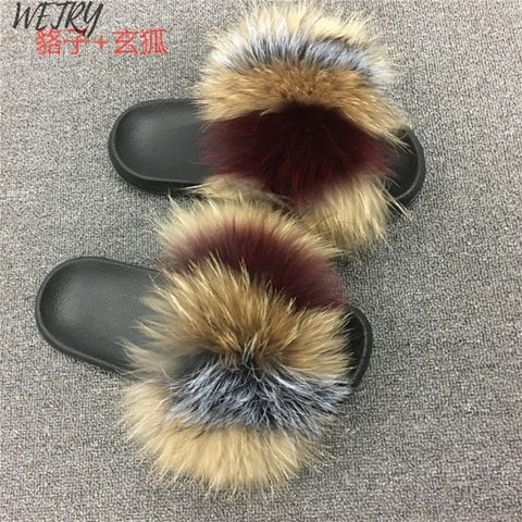 Women's mixcolor Fur Slippers Fox Fur Sandals