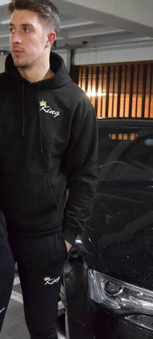 Autumn Women Men Long Sleeve Casual Couple King Queen Print Hooded Hoodies and Pants Set 2018 New Tracksuit Two Piece Clothing